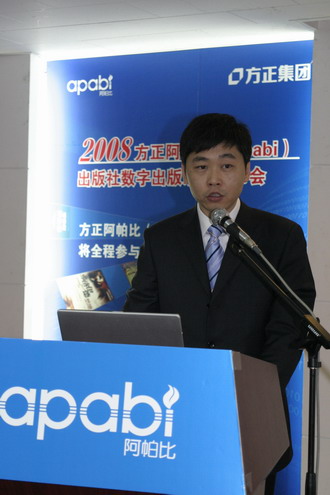 2008年1月7日,方正阿帕比宣布正式發(fā)布“出版社數字出版系統”,并攜手出版社共同推進(jìn)“出版社數字出版系統”的應用。此次新系統發(fā)布恰逢北京2008年圖書(shū)訂貨會(huì )即將召開(kāi)之際,來(lái)自全國各地的150多家出版社領(lǐng)導和主要部門(mén)負責人出席了會(huì )議。